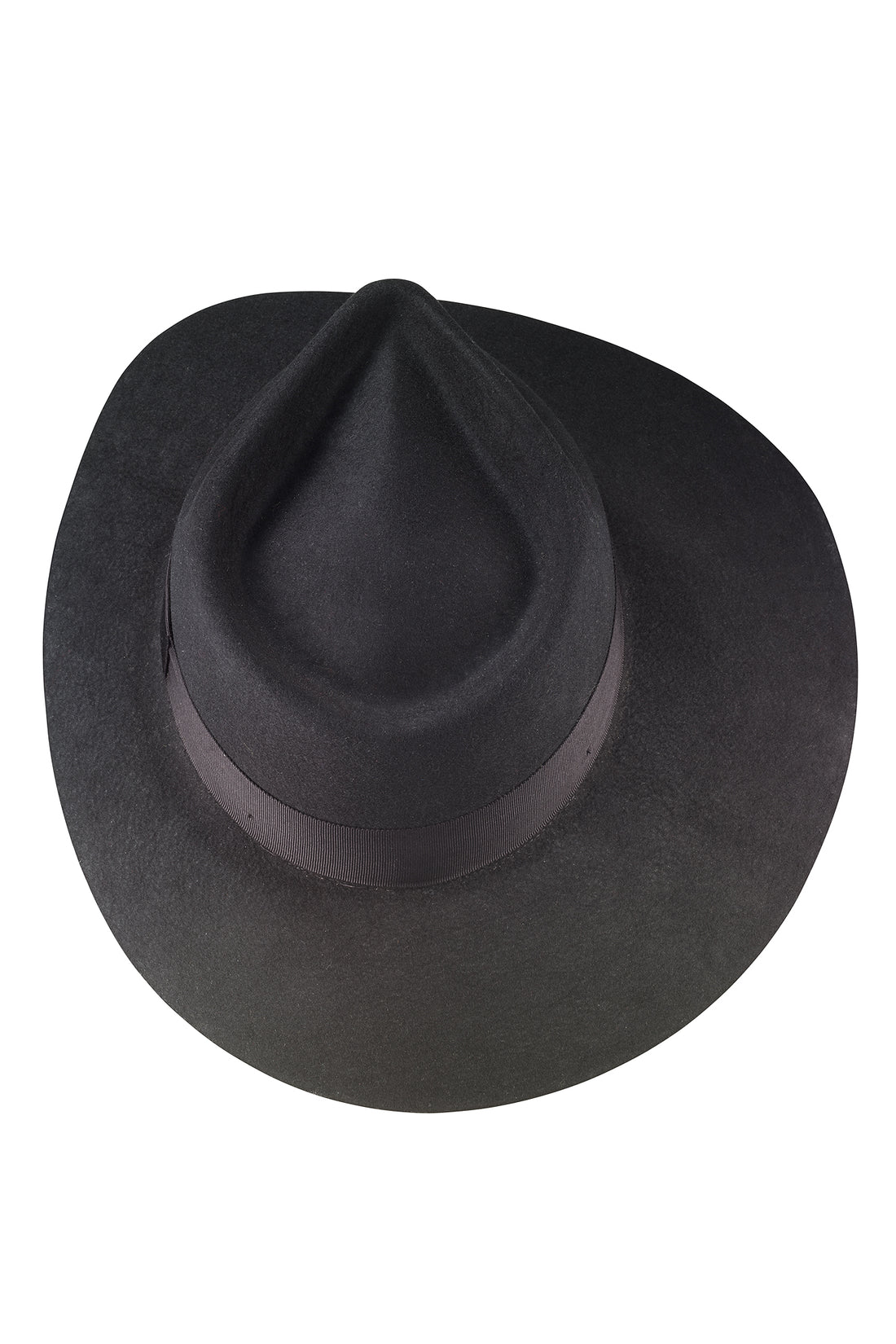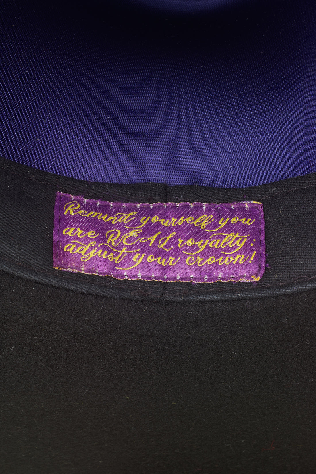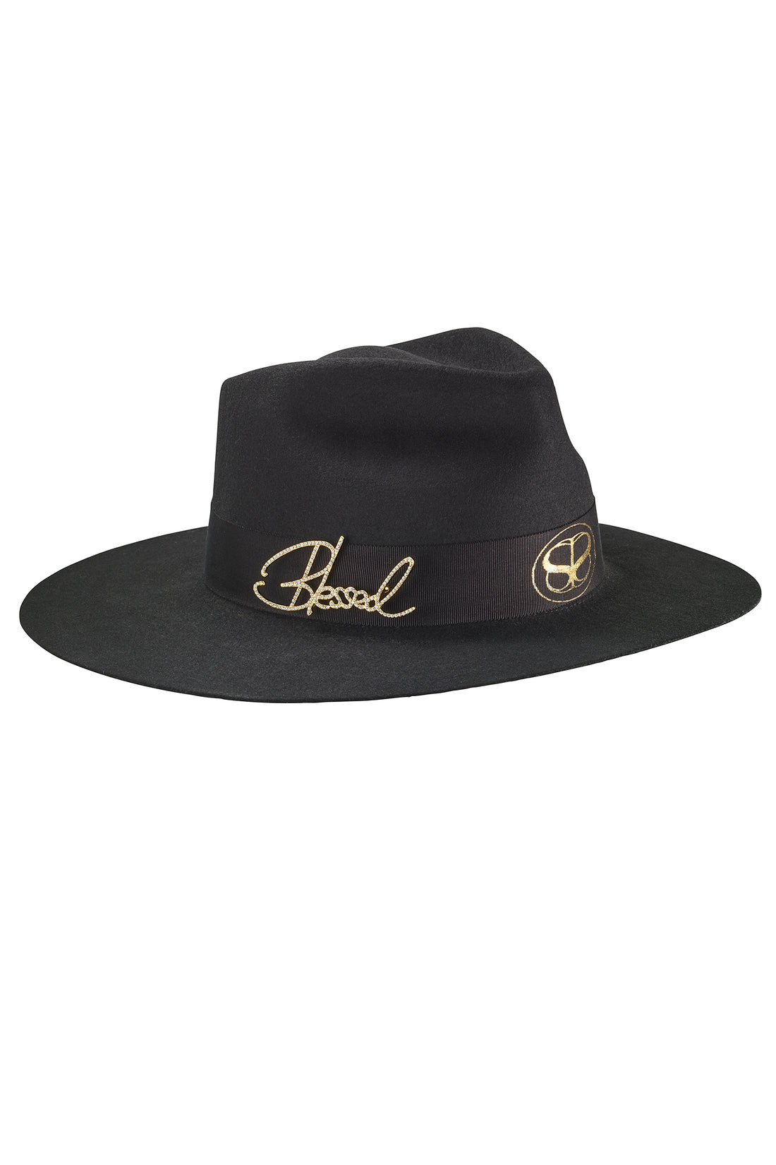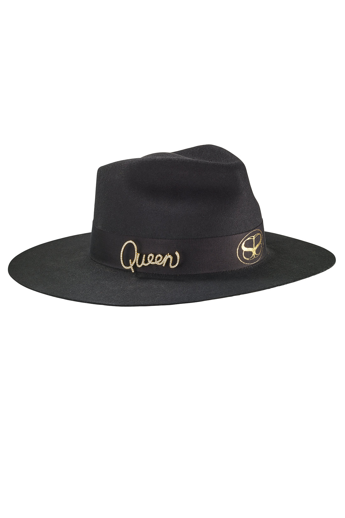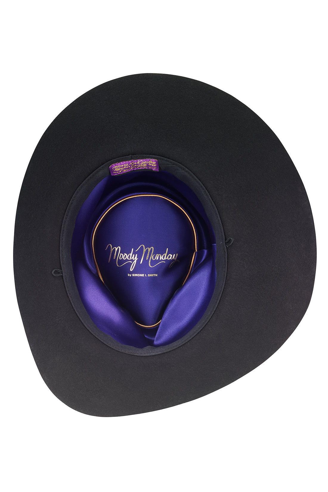 Moody Monday SIS Black Hat. Each hat is handmade from high-quality felt and in versatile shades perfect for all occasions. Special attention was also paid to the inside of the hats, which are lined in silk, feature an inside sweatband and message from Simone to her wearers, “Remind yourself you are real royalty. Adjust your crown." Available in Medium and Large.