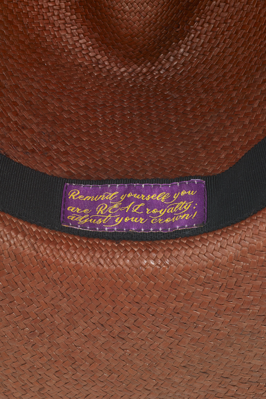Moody Monday Bucket Cowgirl Straw Hat. Made of Toquilla Straw, Hand Woven in Ecuador. Perfect for all occasions, the fedora features a flattering teardrop crown. Special attention was also paid to the inside of the hats, which feature an inside sweatband and message from Simone to her wearers, “Remind yourself you are real royalty. Adjust your crown." Available in size Medium and Large.
