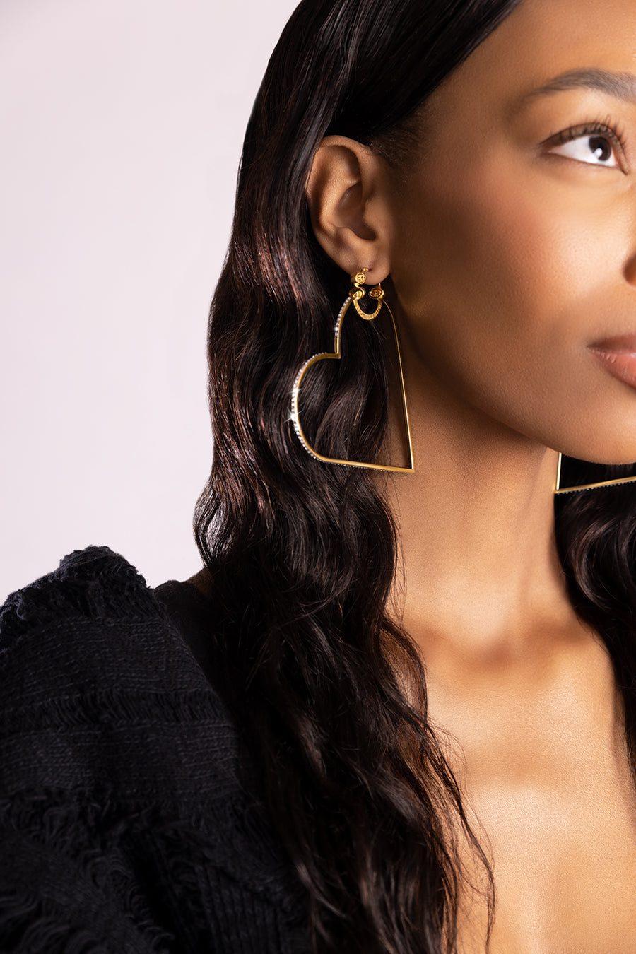 18K Yellow Gold Over Sterling Silver The Love Heart Shape Hoops with Diamond Embellishments Size Large