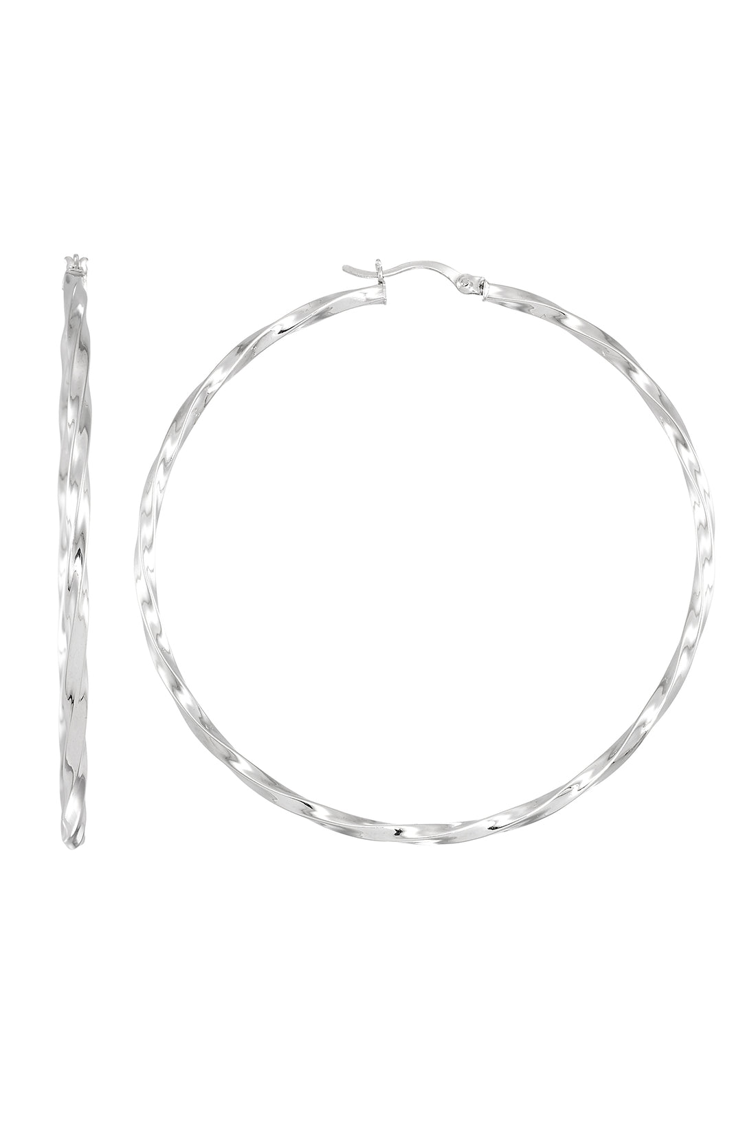 Platinum over Sterling Silver Twist Round Hoop Earrings