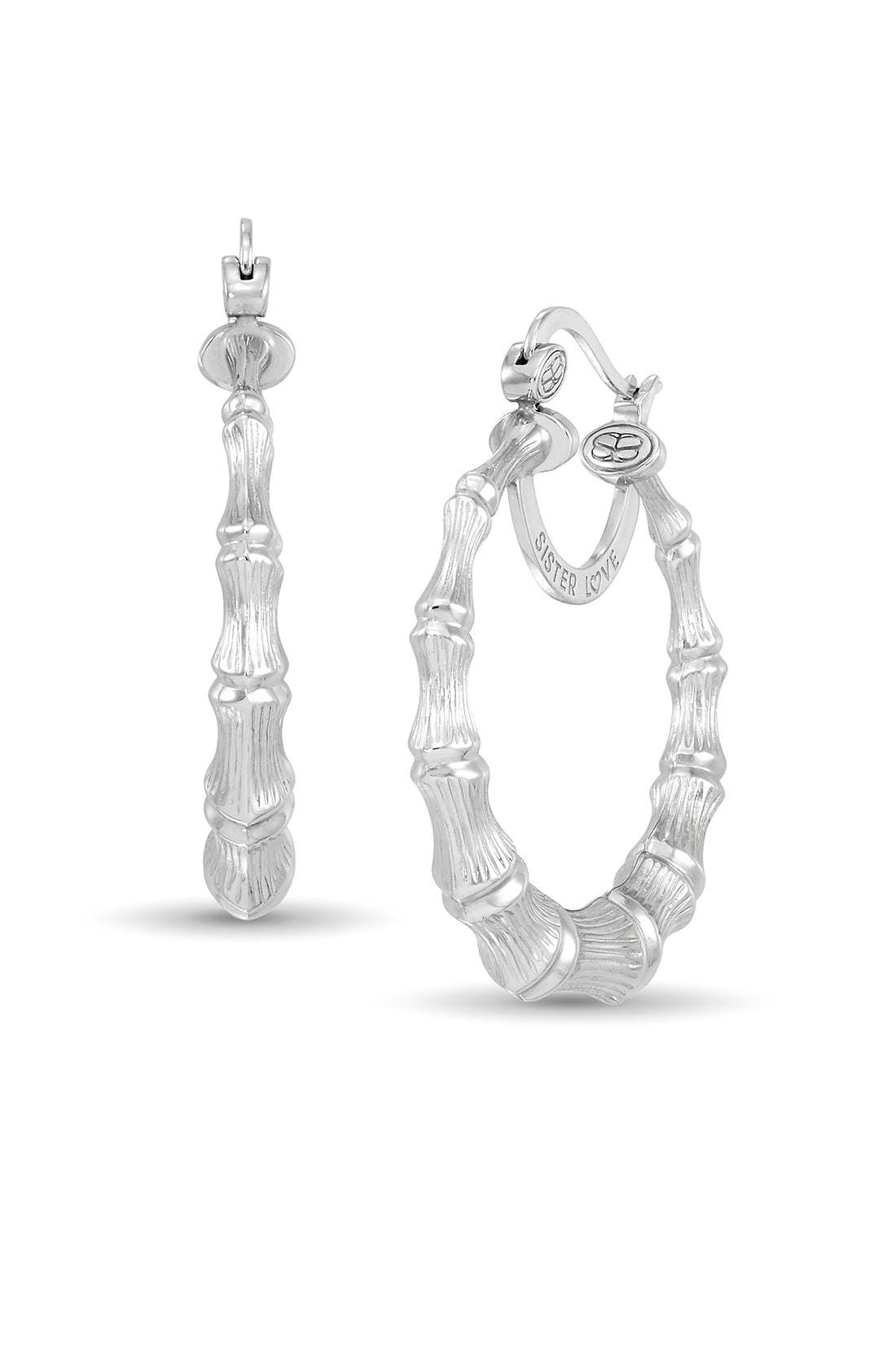 Platinum over Sterling Silver 'Round The Way Girl Bamboo Hoops, Size Medium