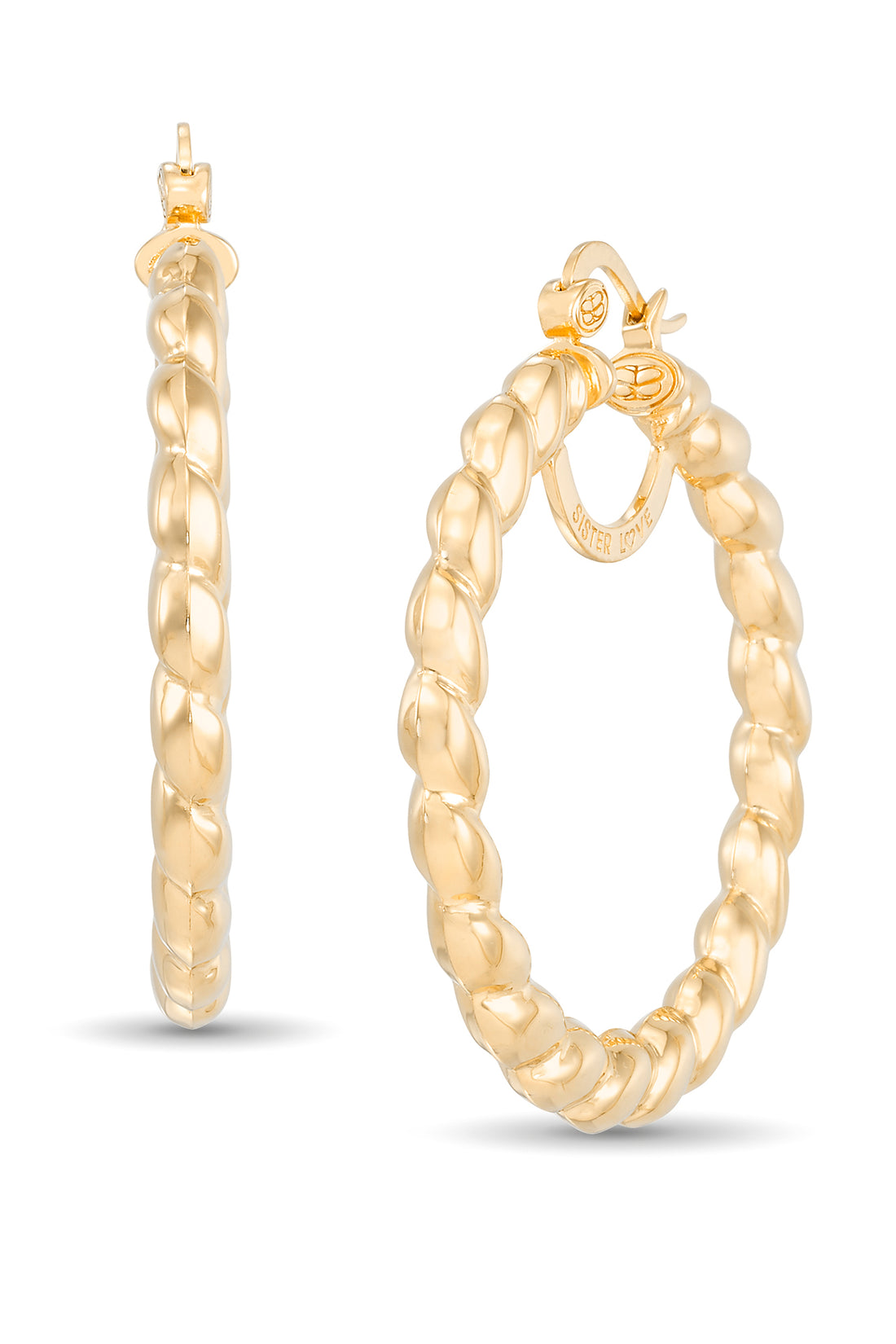 18k Yellow Gold over Sterling Silver French Roll Hoop Earrings, Size Medium