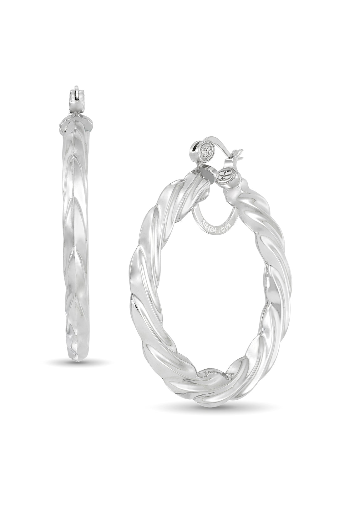 Platinum over Sterling Silver You Got Me Twisted Hoop Earrings, Size Large