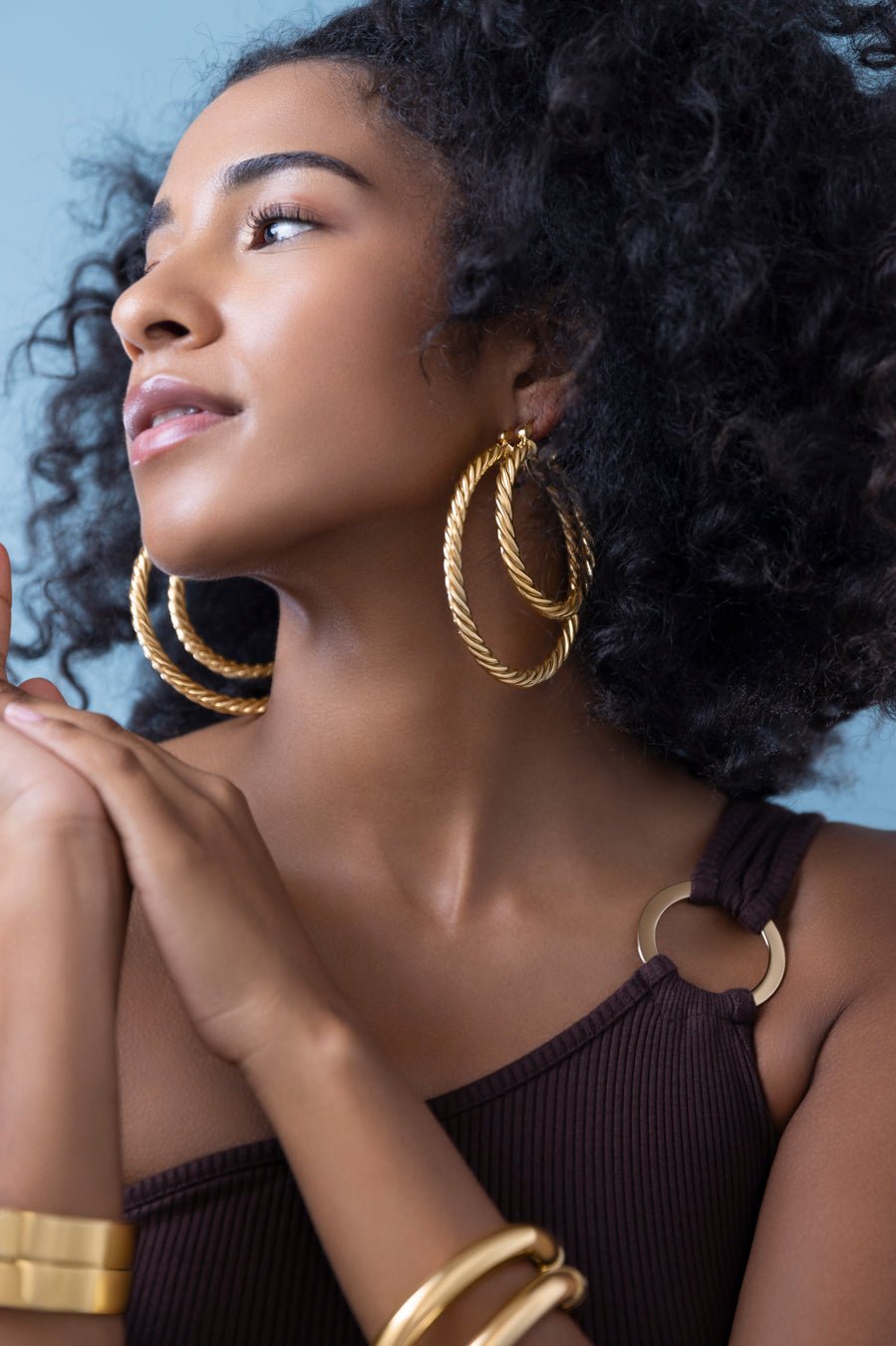 18K Yellow Gold Over Sterling Silver Sister Love Rope-A-Dopes Extra Large Hoop Earrings