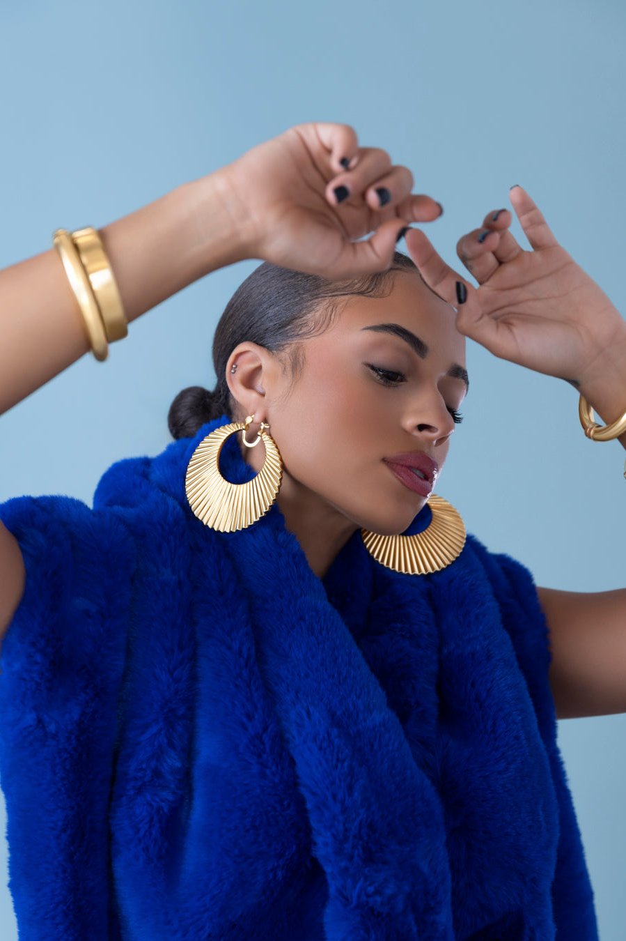 18K Yellow Gold Over Sterling Silver High Polished Sister Love Sun Goddess Hoop Earrings, Size Extra Large