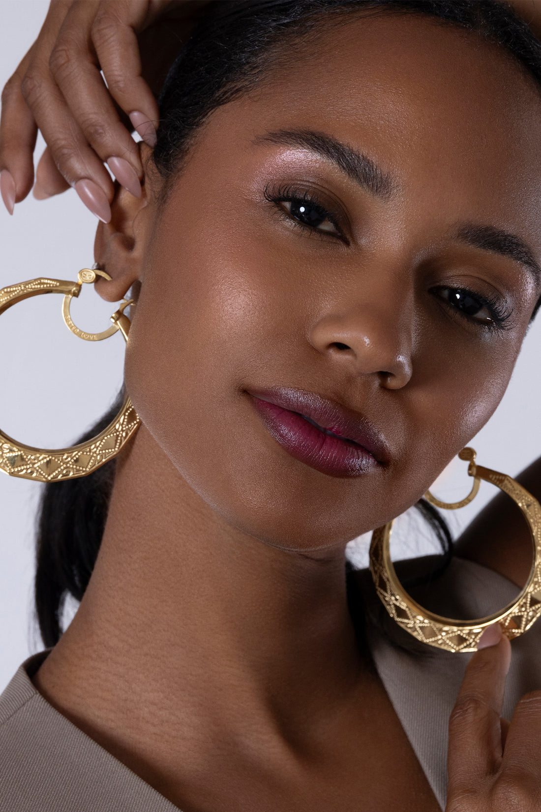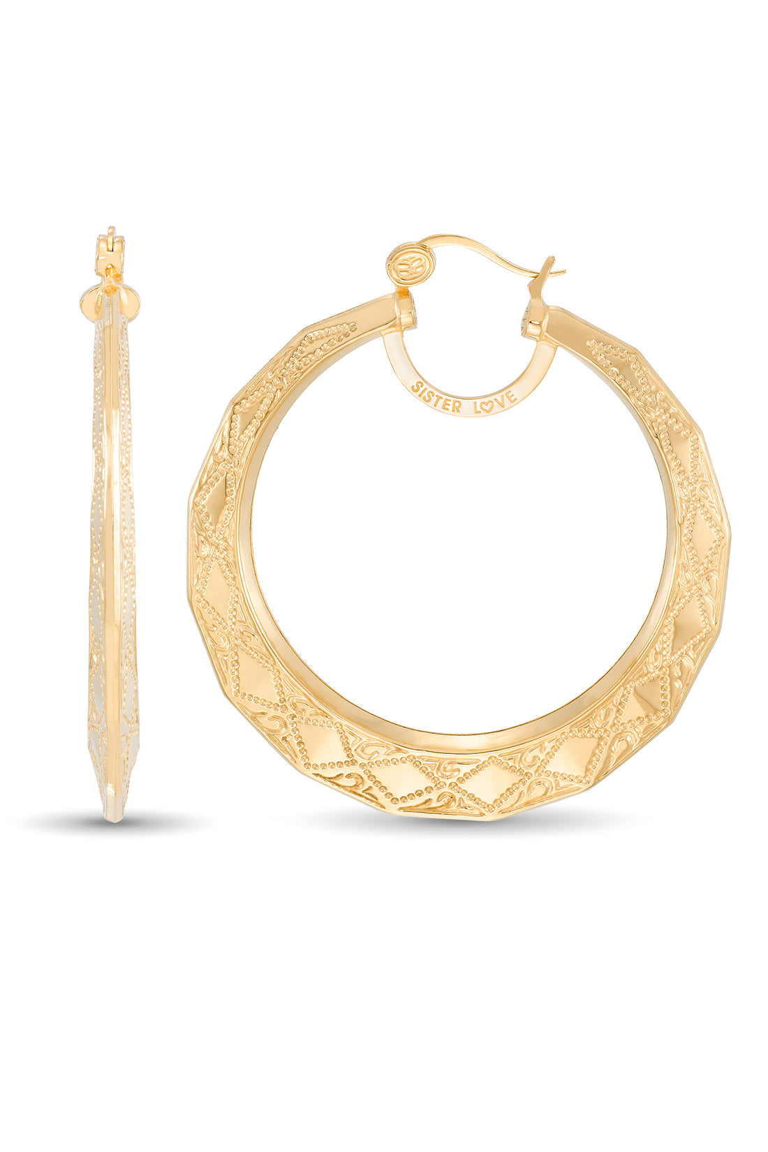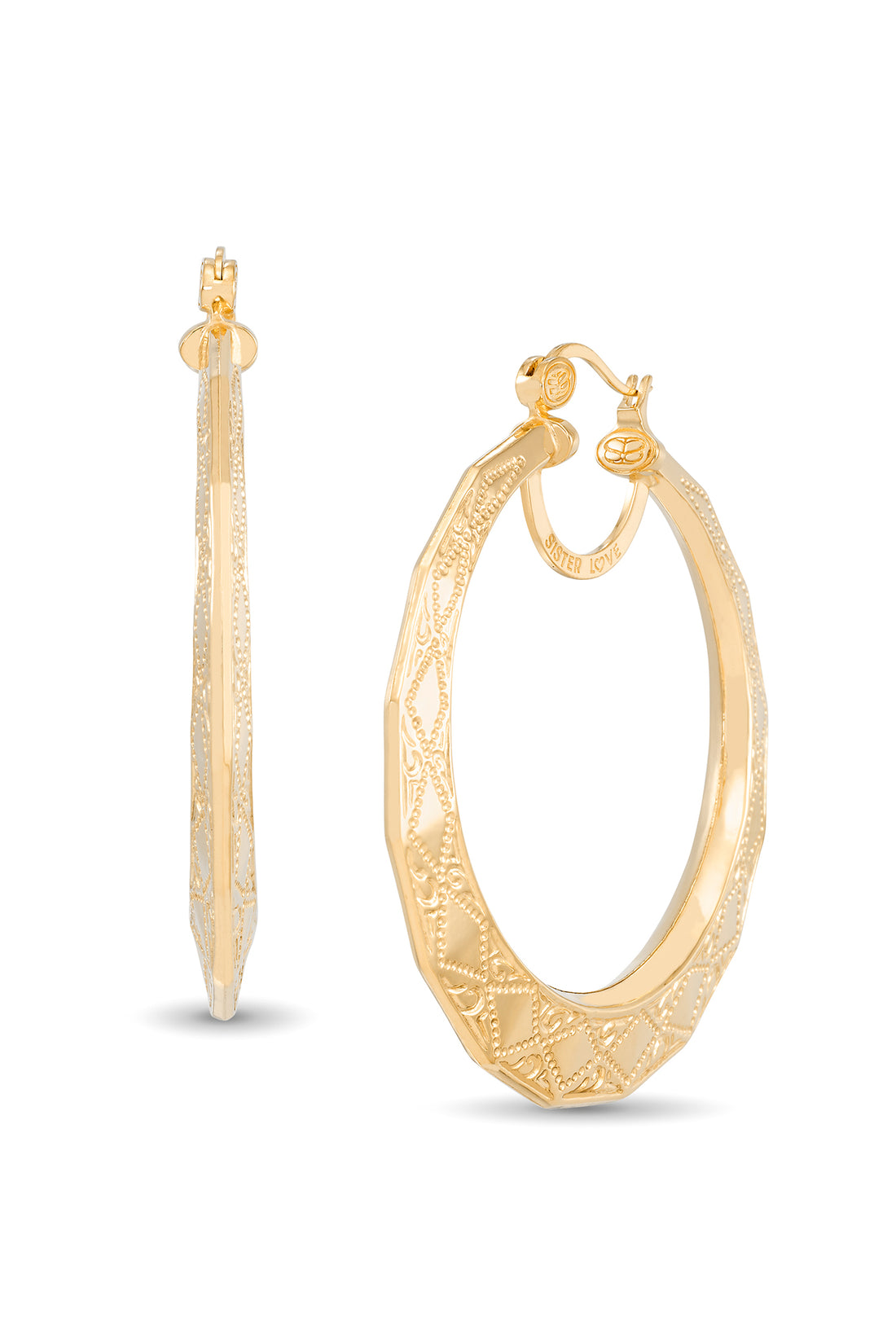 18k Yellow Gold over Sterling Silver Crown Classic Hoop Earrings, Size Extra Large