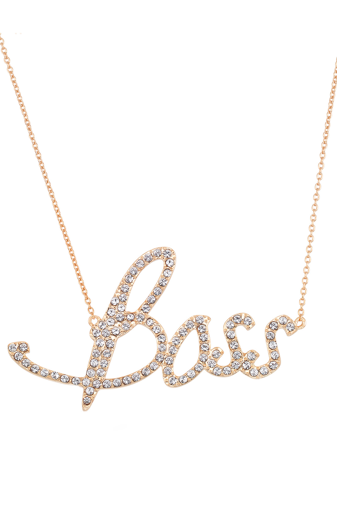 18K Rose Gold Over Sterling Silver Boss Crystal Nameplate Necklace