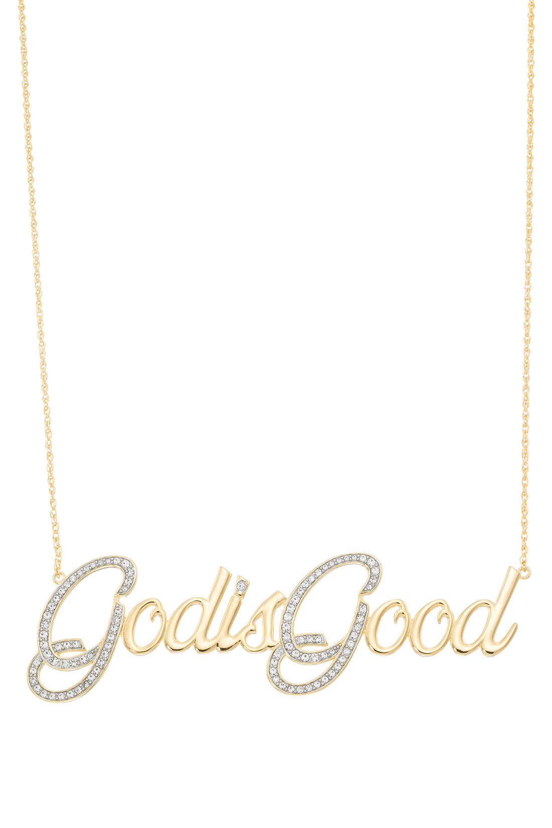 18K Yellow Gold and Platinum Over Sterling Silver God Is Good Crystal Nameplate Necklace
