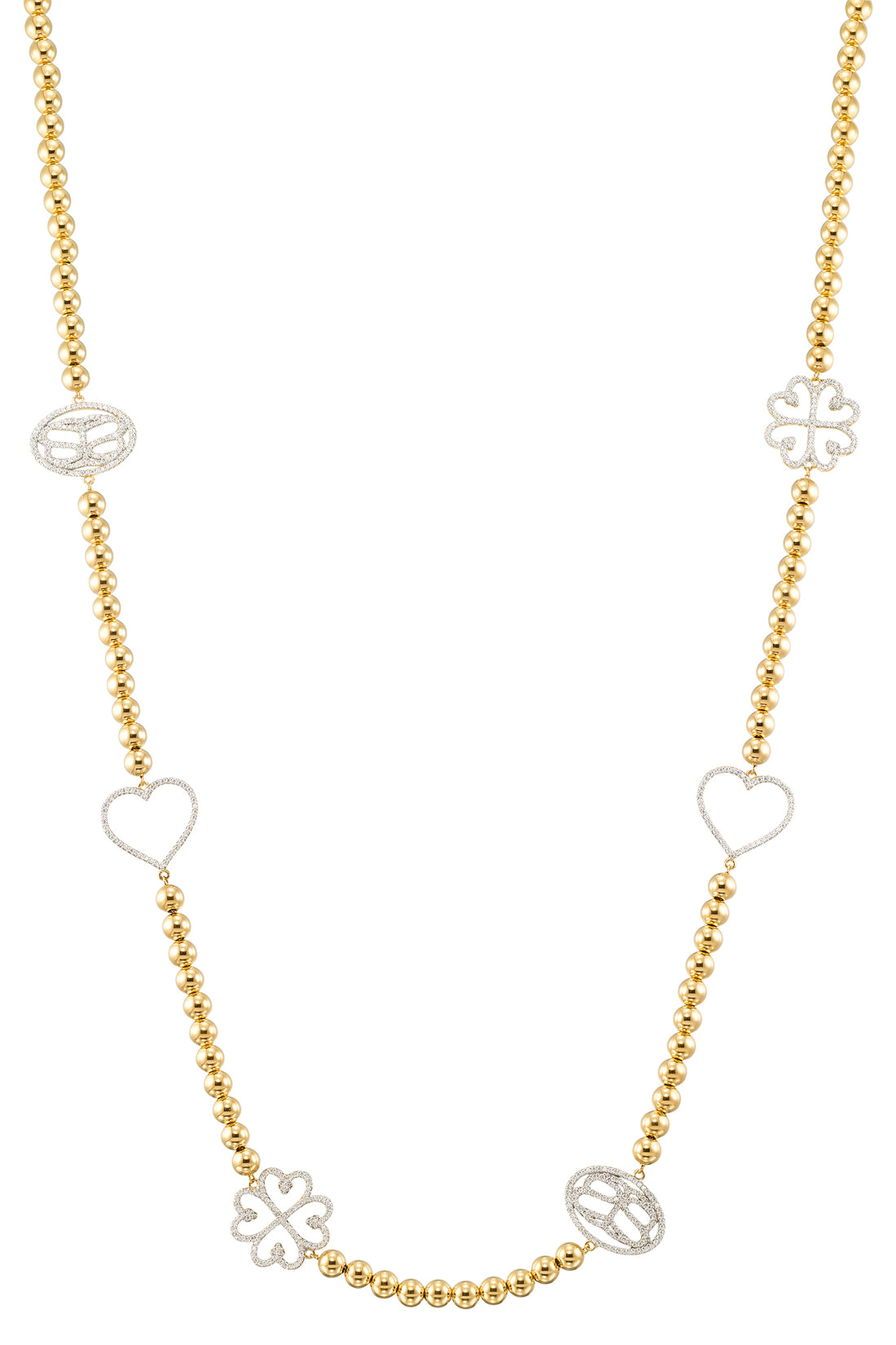 18K Yellow Gold over Sterling Silver with 5.5 CT. T.W. of Brilliant Simulated Diamonds on a Strand of Hand Polished gold beads, 36"