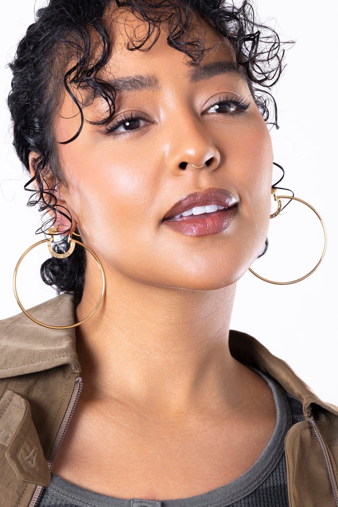 18K Yellow Gold Over Sterling Silver Large Sister Love Princess Hoops